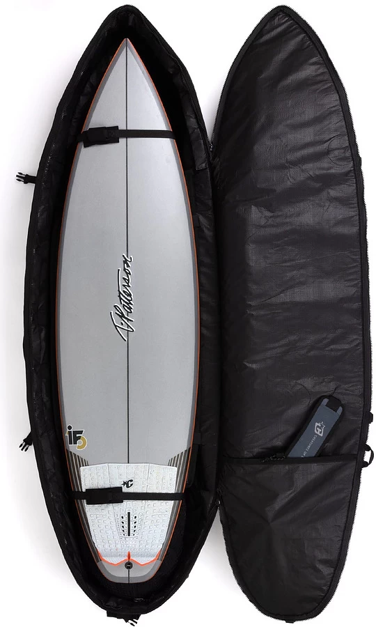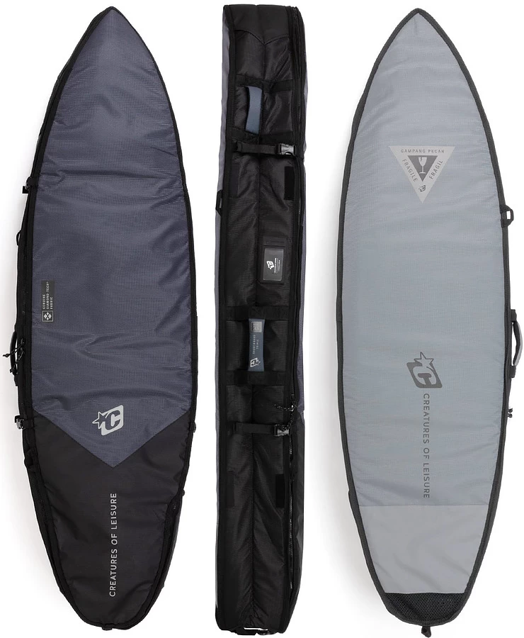 The Triple Boardbags are now lighter, stronger and more durable with the exclusive Diamond-tech fabric, a custom-made interwoven dobby fabric which is resistant to UV degradation, stable in high temperature ranges and has a hydrophobic coating. While the Diamond-tech fabric provides superior abrasion resistance, the 10mm closed cell foam padding provides board protection in the event of impact. The X-FLOW Ventilation System allows trapped air to be removed from the Boardcover, replacing it with cool fresh air, removing humidity and moisture. The Triple covers come with the Modular packing system – exclusive to Creatures