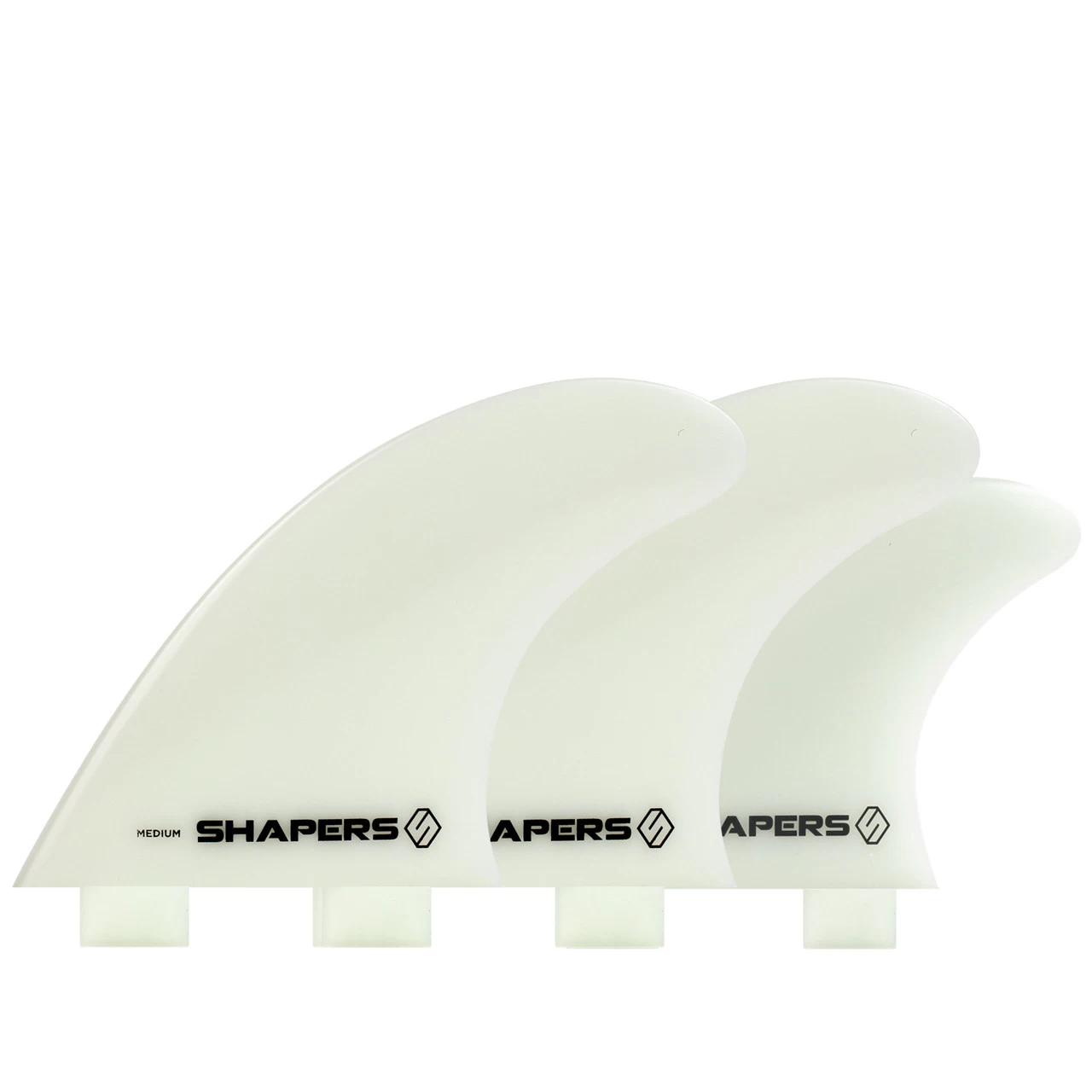 An all round fin set-up by Shapers that is internationally recognised as a ‘go to set-up’ for surfers in the medium weight category (65-80kgs). The Medium blends drive, control and release seamlessly, and is offered in Shapers Core-lite and Carbon Stealth to give surfers the choice of fin flex properties, fin responsiveness and overall performance. A very reliable fin choice for performance in all surf conditions.