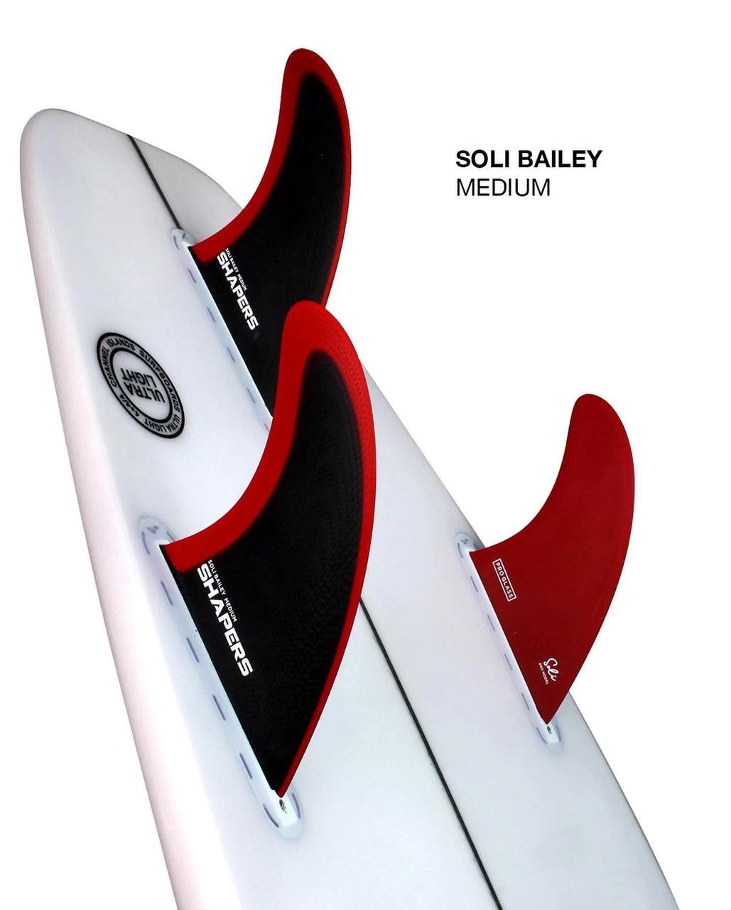 Soli Bailey, a former Volcom Pipe Pro winner and an active WSL competitor, surf’s with speed and power and is a legitimate charger! Soli’s fins are positioned in the Carve Fin Class, a progressive design that loves to be surfed hard and fast. Soli’s fins feature a unique bevelled leading edge for smooth, controlled surfing that will easily adapt to a vast range of modern surfboard designs.